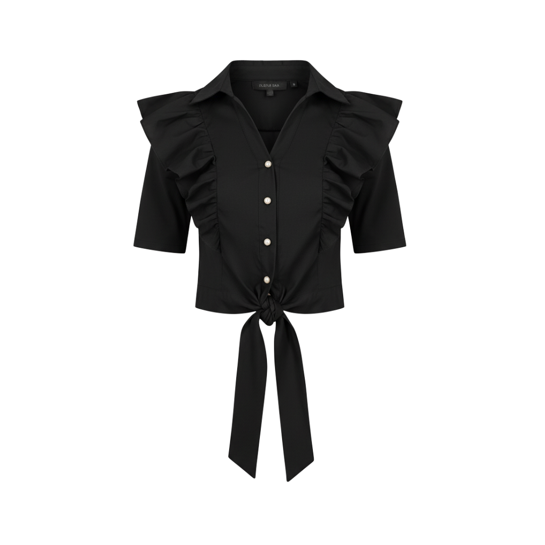 Blusa de algodón confeccionada con costuras precisas y telas de primera calidad. Diseño entallado que realza la silueta, complementado con un elegante detalle de bolero en los hombros. Cierre de amarre delantero que permite ajuste personalizado. La textura suave del algodón garantiza comodidad durante todo el día, ideal para looks casuales y profesionales.