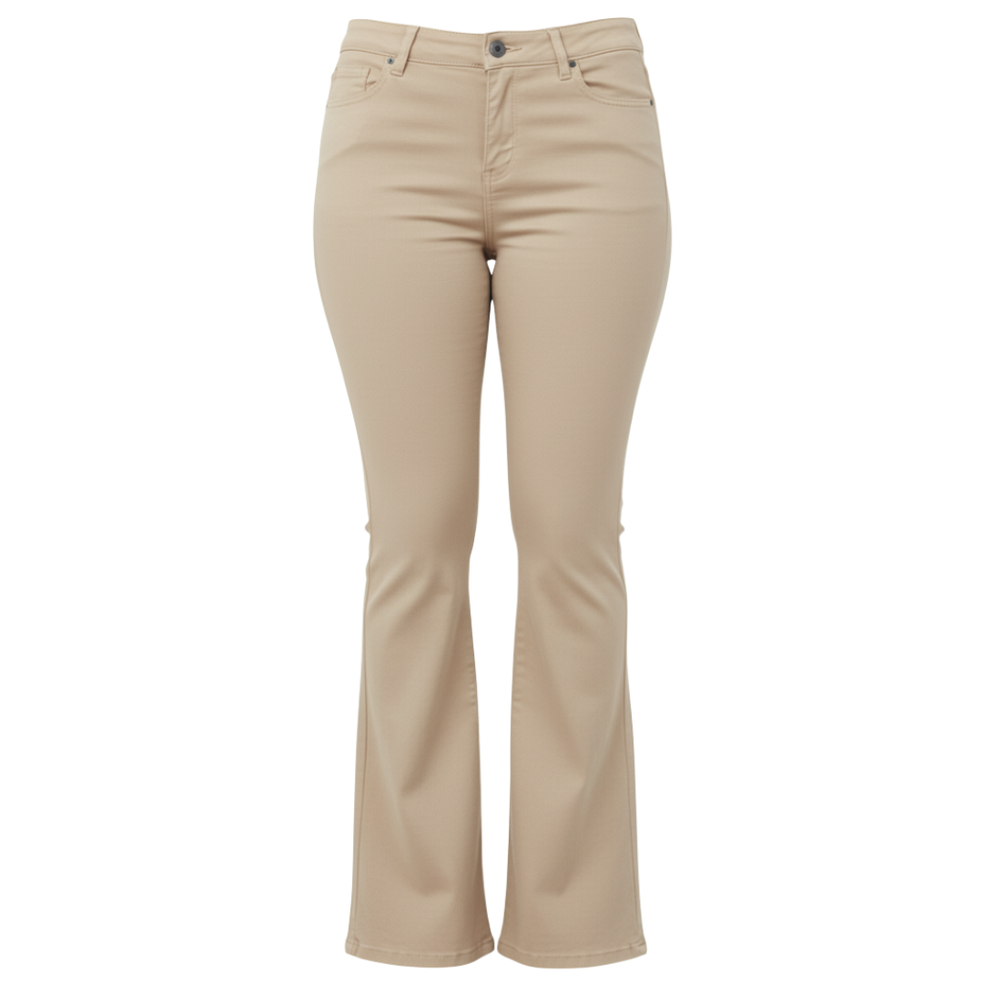 El regreso de una silueta icónica. Este pantalón de drill presenta un favorecedor corte de bota campana que estiliza la figura. Confeccionado en una cómoda mezcla de algodón y poliéster, combina el diseño clásico de cinco bolsillos con un toque retro y versátil.